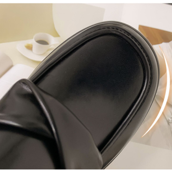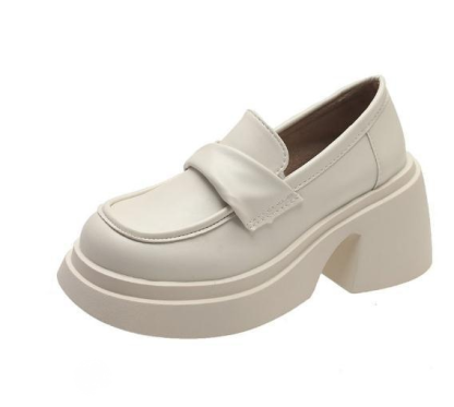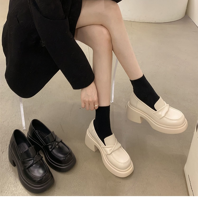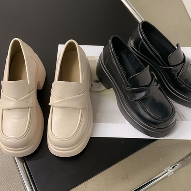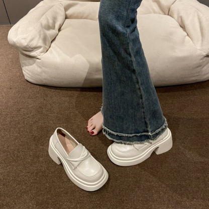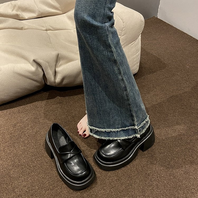 法式粗跟厚底樂福鞋女