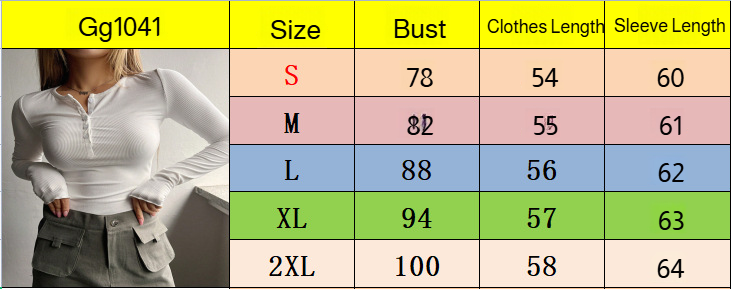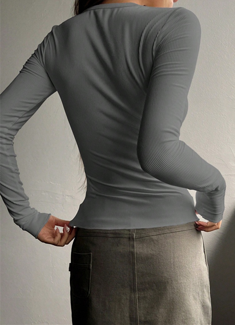 修身針織杉長袖T恤紐扣羅紋